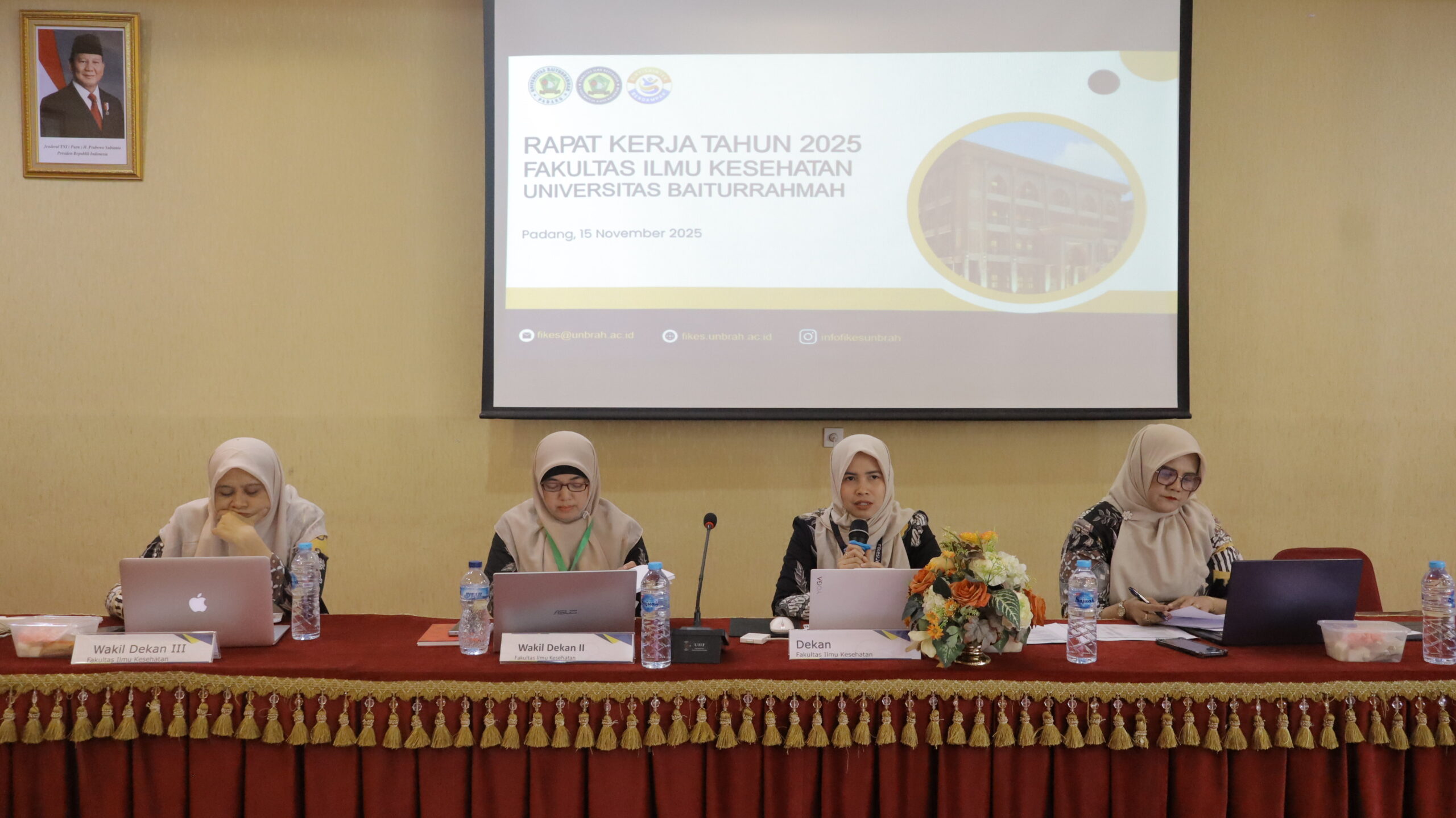 Fakultas Ilmu Kesehatan (Fikes) Universitas Baiturrahmah melaksanakan Rapat Kerja (Raker) Tahun 2025 pada Sabtu, 15 November 2025, bertempat di Ruang Sidang Yayasan Pendidikan Baiturrahmah. Kegiatan strategis ini diadakan sebagai bentuk evaluasi menyeluruh terhadap pelaksanaan program sepanjang tahun 2025 serta penyusunan arah kebijakan dan rencana kerja untuk tahun 2026. Raker berlangsung dengan suasana produktif karena seluruh unsur di lingkungan Fikes terlibat secara aktif.