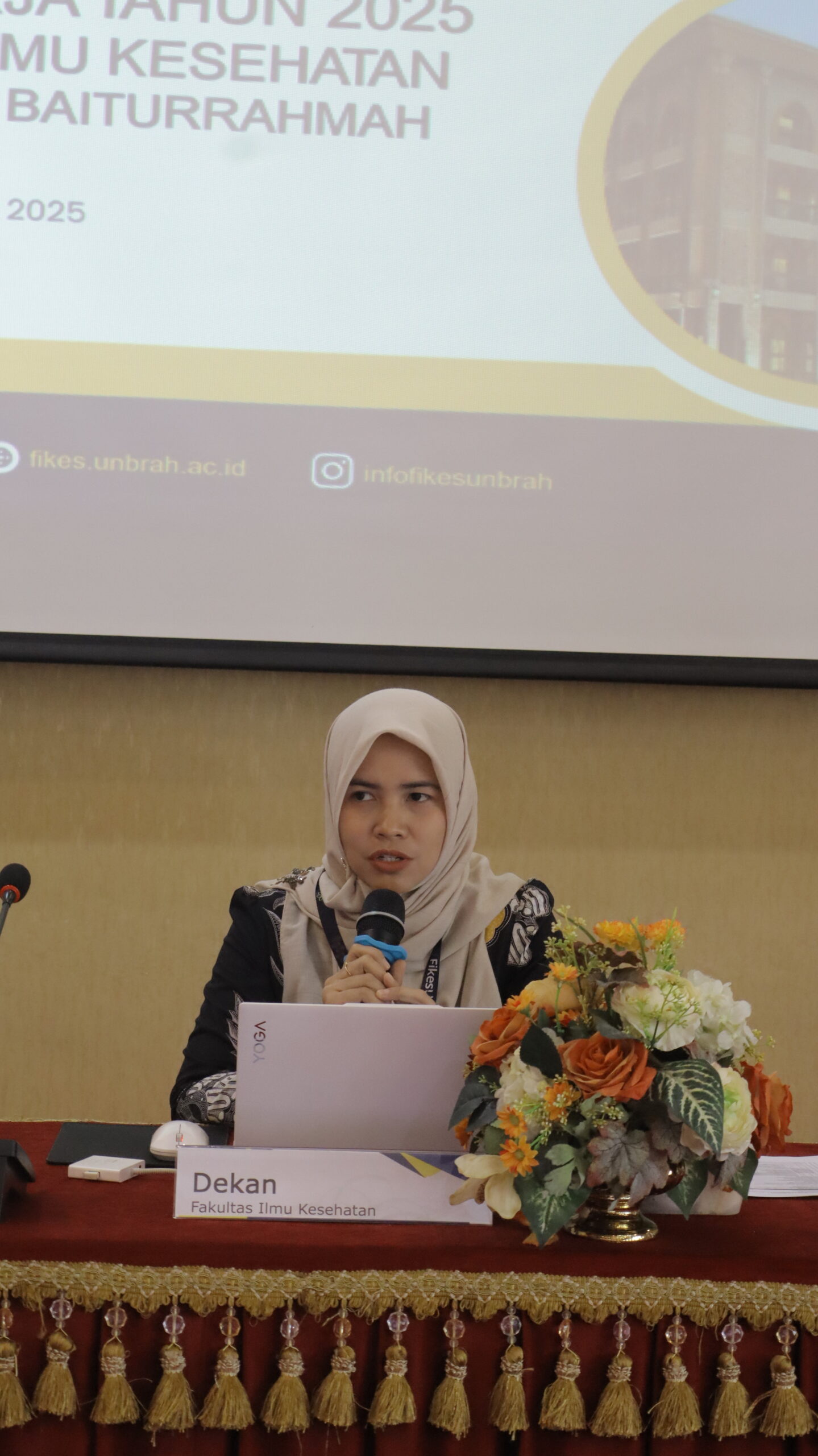 Dekan Fikes Unbrah, Dr. Sevilla Ukhtil Huvaid, SKM, M.Kes, dalam sambutannya menjelaskan bahwa Raker ini menjadi momentum penting untuk mencanangkan program kerja fakultas dengan mengacu pada regulasi dan kebijakan terbaru, termasuk Permendiktisaintek Nomor 39 tentang Akreditasi. Menurutnya, perubahan regulasi memerlukan penyesuaian dan pembaruan strategi, sehingga raker menjadi forum yang tepat untuk memformulasikan arah pengembangan fakultas secara sistematis dan terukur. Ia menekankan pentingnya kesiapan fakultas untuk menghadapi tuntutan akreditasi dan peningkatan kualitas tridharma perguruan tinggi.