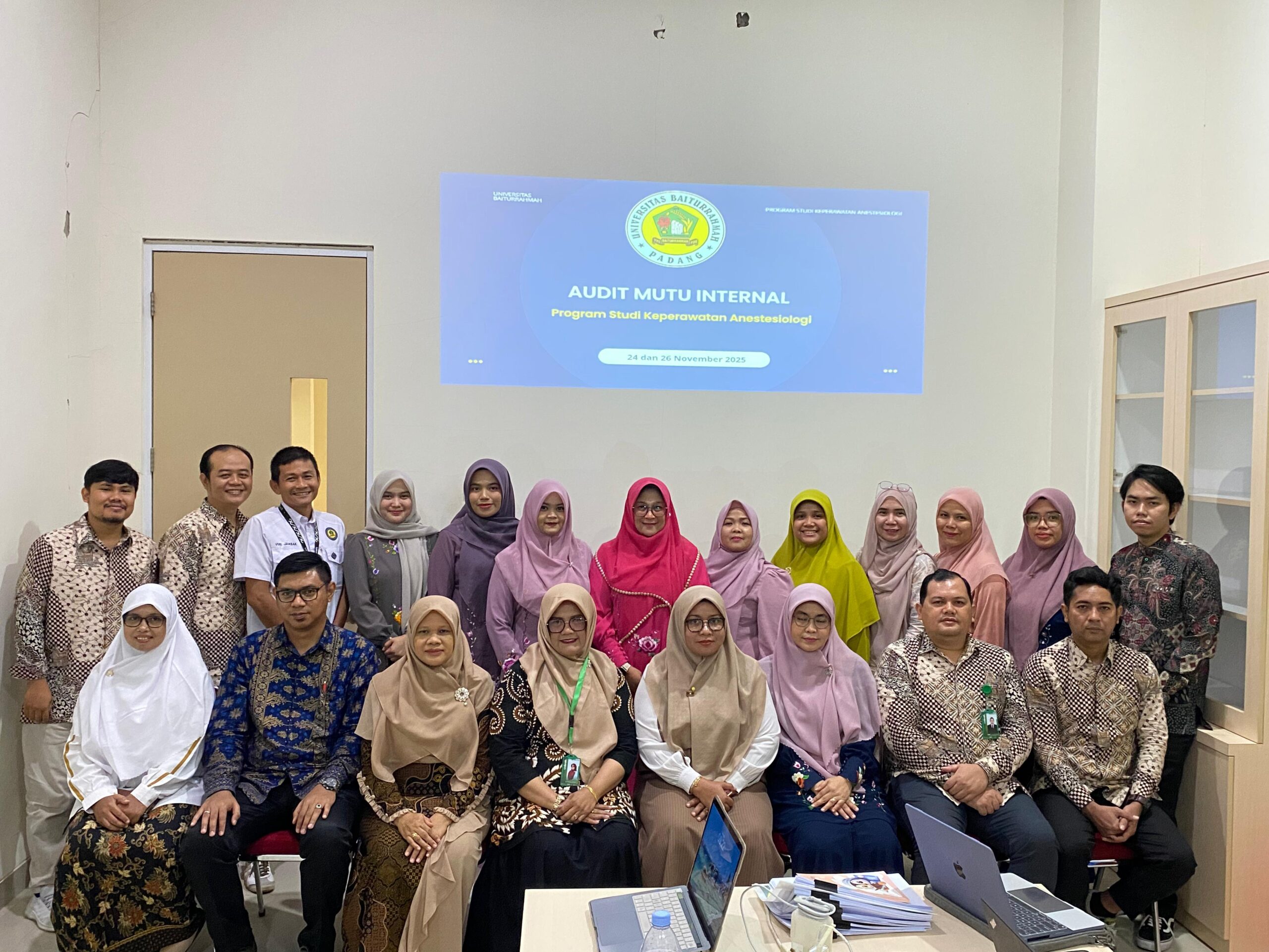 LP3M Universitas Baiturrahmah melaksanakan Audit Mutu Internal untuk Prodi Keperawatan Anestesiologi pada 24 dan 26 November 2025 di Gedung I Ruang 114 dengan melibatkan pimpinan vokasi, dosen, tendik, dan pengelola prodi.