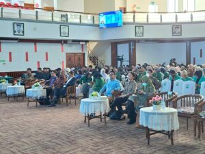 Puluhan mahasiswa Unbrah yang tergabung dalam Badan Eksekutif Mahasiswa dan Ormawa turut serta dalam kegiatan acara nonton bareng (nobar) dan talkshow Pernyataan Pers Tahunan Menteri Luar Negeri 2026 di Convention Hall, Universitas Andalas Padang, Pada Rabu 14 Januari 2026.