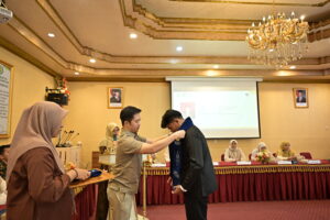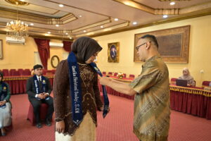 Kaprodi ARS menyematkan salempang kelulusan.