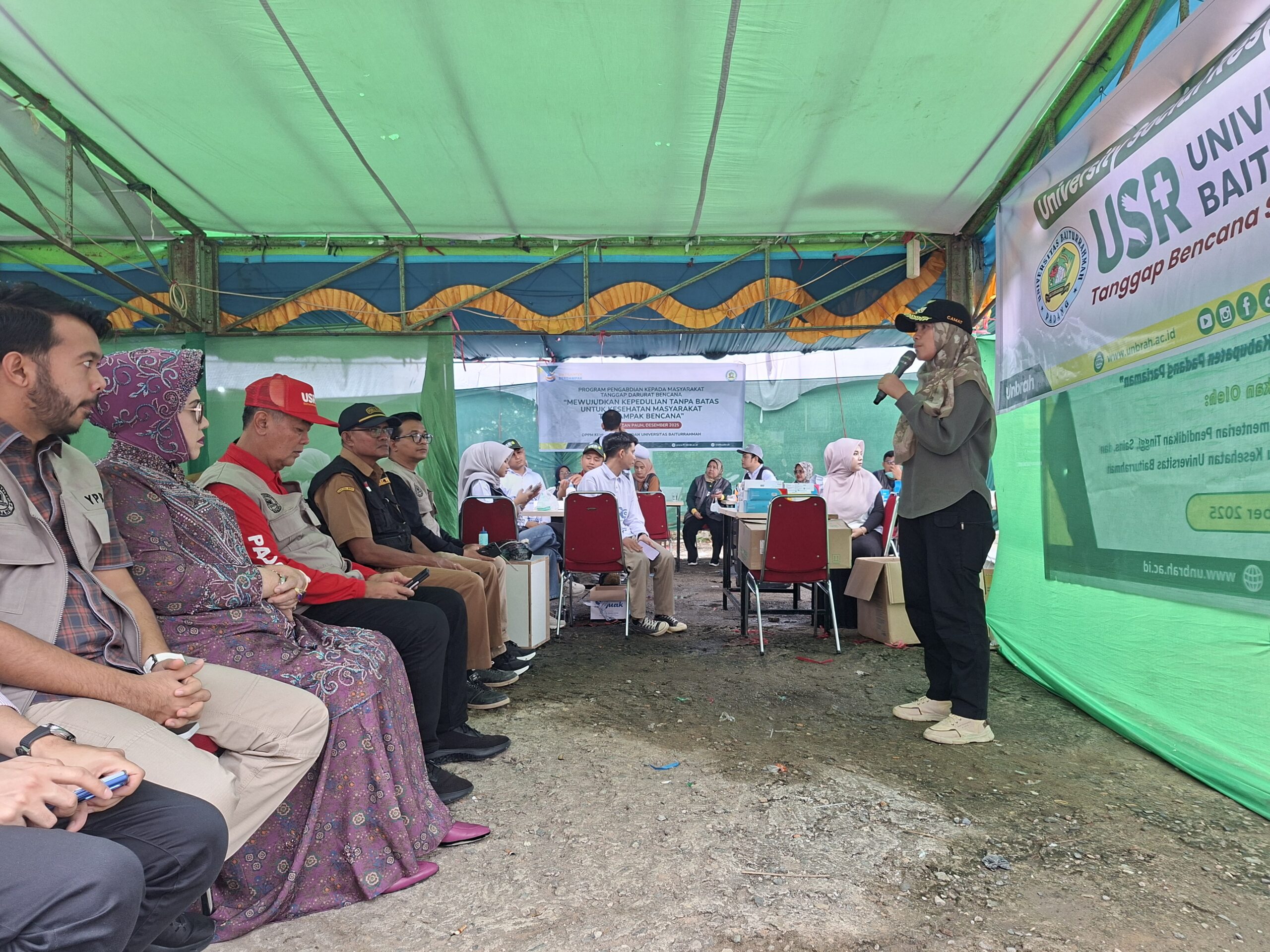 Rektor Universitas Baiturrahmah Prof. Dr. Ir. Musliar Kasim, M.S dalam sambutannya saat pembukaan kegiatan mengatakan bahwa pelaksanaan USR Tanggap Darurat Bencana merupakan wujud komitmen Unbrah dalam menjalankan pengabdian kepada masyarakat. Menurutnya, tanggap darurat bencana adalah tanggung jawab bersama seluruh elemen, termasuk perguruan tinggi.
